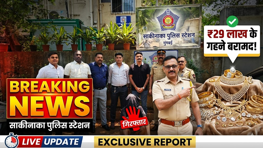 मुंबई के साकीनाका इलाके में हुई लाखों रुपये की चोरी के मामले में पुलिस को बड़ी सफलता मिली है। साकीनाका पुलिस ने करीब 29 लाख रुपये मूल्य के सोने-चांदी के गहनों की चोरी का खुलासा करते हुए एक शातिर आरोपी को गिरफ्तार किया है।